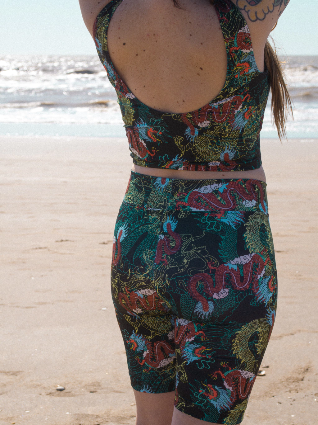 Top en lycra estampada con tecnología UV50+, ideal para estar al aire libre, ya que protege del sol.