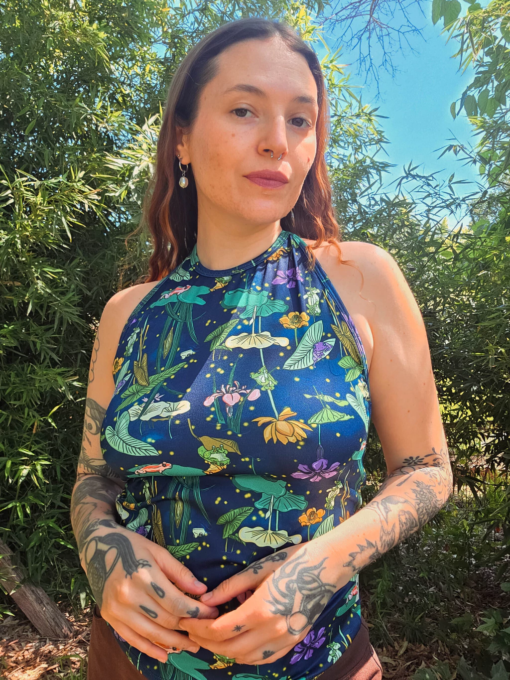 Top en lycra estampada con tecnología UV50+, que protege del sol.