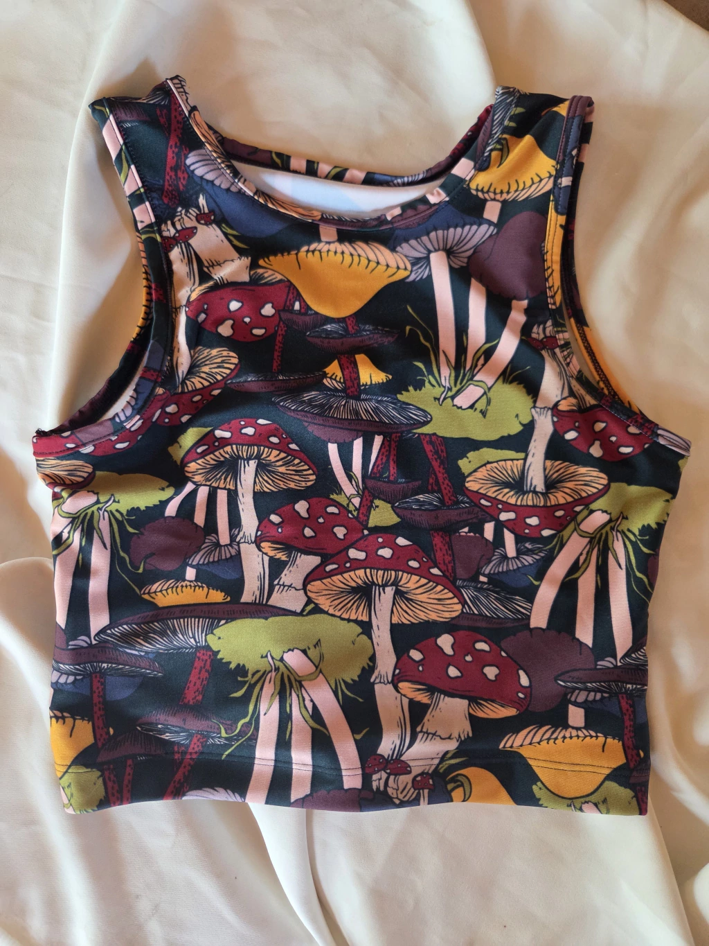 Top en lycra estampada con tecnología UV50+, ideal para estar al aire libre, ya que protege del sol.